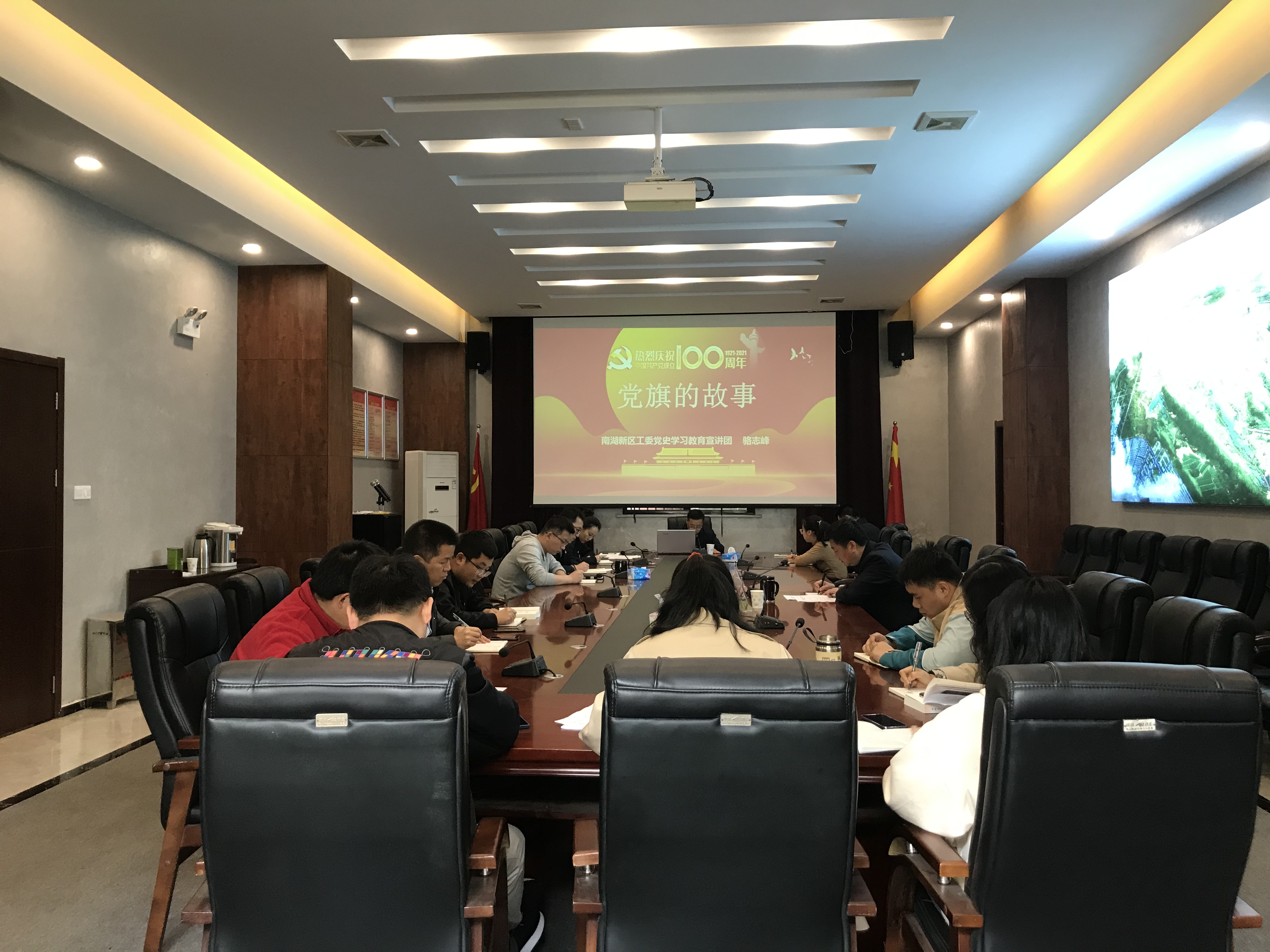 專題學(xué)習(xí)邀請(qǐng)到區(qū)工委黨史學(xué)習(xí)教育宣講團(tuán)講師駱志峰同志做題為《黨旗的故事》專題宣講,宣講從旗幟是形象旗幟是方向、黨旗的由來、黨旗引領(lǐng)我前進(jìn)等三個(gè)方面,為與會(huì)人員上了一堂生動(dòng)的黨課,黨課內(nèi)容充實(shí),立意高、寓意深,指導(dǎo)性強(qiáng),語言通俗易懂,對(duì)黨員更好的學(xué)習(xí)黨史提供了很大的幫助,深受教育啟發(fā),收獲良多。