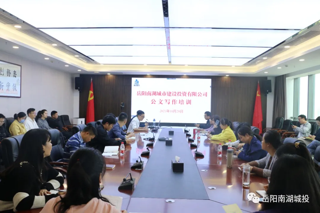 10月28日,岳陽南湖城市建設(shè)投資有限公司開展第二期公文寫作培訓(xùn),聘請岳陽市委辦公室四級調(diào)研員李羨賓授課,通過講解公文基礎(chǔ)知識、舉例示范、現(xiàn)場問答等方式,進一步提高所有員工公文寫作水平和公文處理效率,公司各部門及子公司共70余人參加培訓(xùn)。