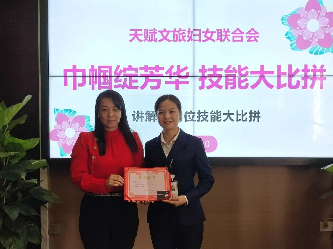 近日,天賦文旅公司婦聯(lián)組織開展了“巾幗綻芳華技能大比拼”主題系列活動,鼓勵女職工學(xué)習(xí)業(yè)務(wù)綜合知識,更好地展示公司女性員工健康自信、積極向上的精神風(fēng)貌。