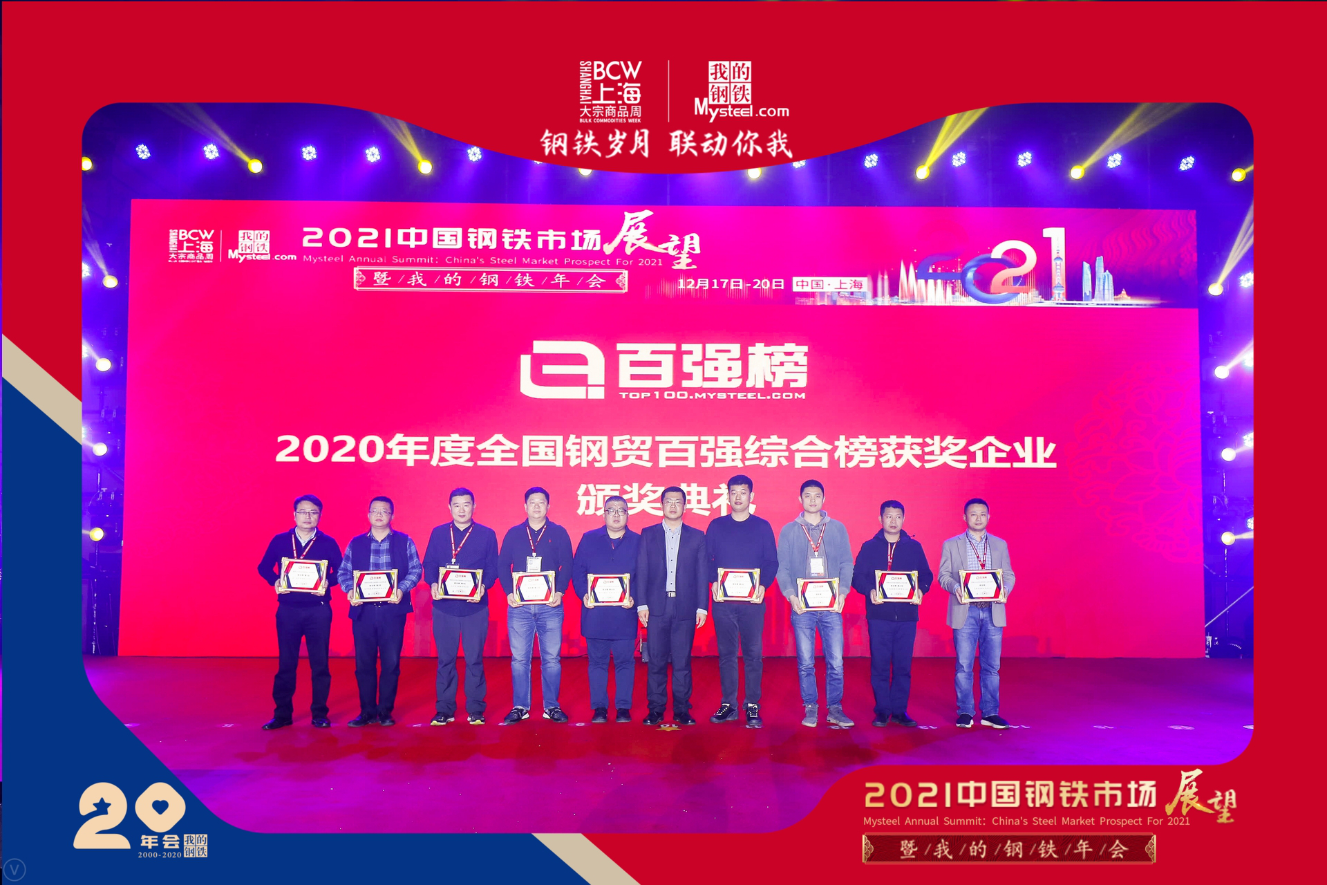 2021中國鋼鐵市場展望暨“我的鋼鐵”年會于12月20日在上海圓滿閉幕,天鑫諾一公司入選2020年度全國鋼貿(mào)企業(yè)百強(qiáng)榜綜合榜第40位。